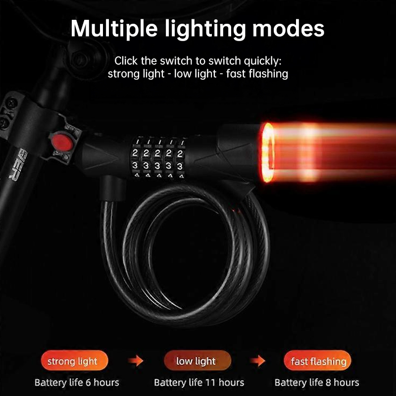 Product Name: Bicycle Lock with Tail Light & 5-Digit Password, Steel Cable Lock -